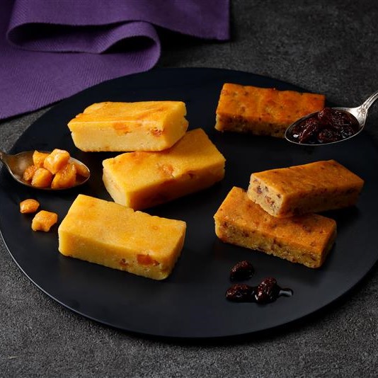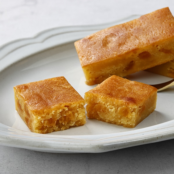 りんごのアクセントが楽しい、ブランデーが香る大人スイーツ生地に焼き芋とホワイトチョコレートを練り込み、ブランデーに漬け込んだダイスカット状のりんごが入っています。しっとりしたケーキに、りんごのシャキッとした食感を楽しめるブランデーが香る大人向け食べきりサイズのケーキです。