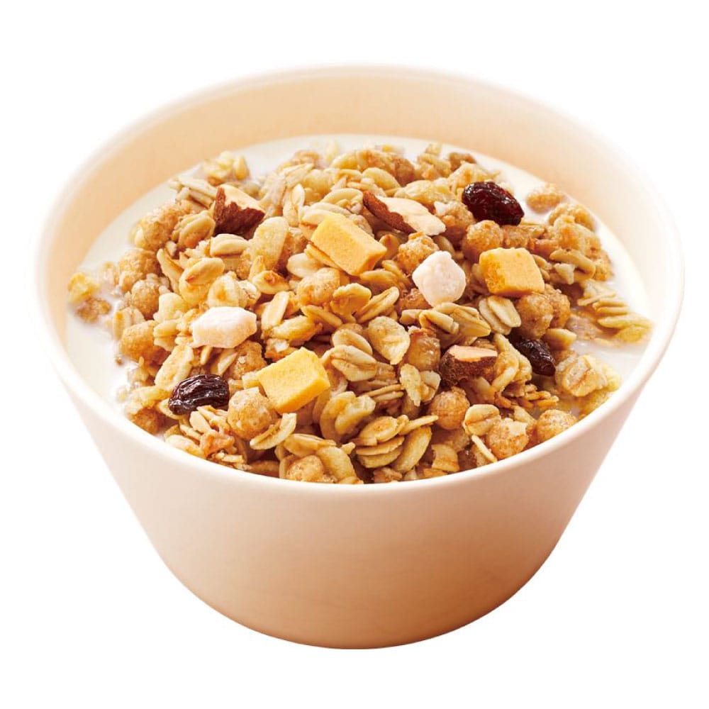 香りが特徴的なメープル味のグラノーラに、秋のイメージが強いさつまいもとりんごをトッピング。トッピングのさつまいもにはカルビーかいつかスイートポテトのオリジナルブランドのさつまいも「紅天使」を使用!紅天使の甘みがメープル味の生地のコクをより引き立てます。
