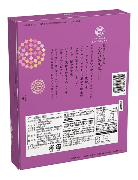 「カルビーかいつかスイートポテト」のブランド芋「むらさき天使」をダイス状にカットし、華やぐ紫色のスナック菓子を作りました。カリッと堅めの食感と華むらさきそのままの甘さをお楽しみください。